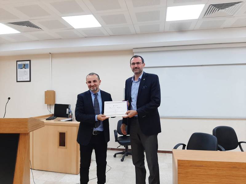 Cumhuriyetimizin 100. Yıl etkinlikleri kapsamında Fakültemiz tarafından gerçekleştirilen “Cumhuriyet Yüzyılının Bilimsel Kazanımları” temalı konferans serimiz "Türk Modernleşmesi ve Cumhuriyet” başlıklı sunum ile 22.11.2023 tarihinde Fakültemiz Konferans Salonunda yapılmıştır. Fakültemiz Sosyoloji Bölüm Öğretim üyesi Prof. Dr. Mustafa Kemal ŞAN tarafından gerçekleştirilen sunum sonrasında Dekan V. Prof. Dr. Özer KÖSEOĞLU tarafından Teşekkür Belgesi takdim edilmiştir.